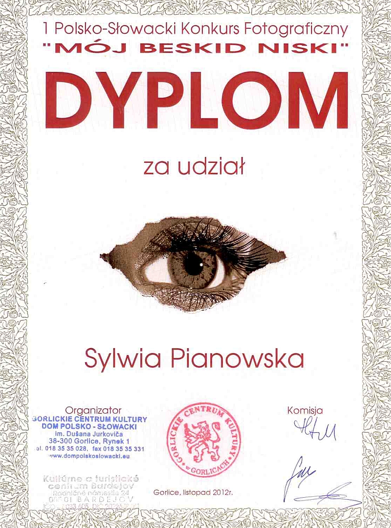 Wernisaż___W dniu 16 października 2012r w Domu Polsko - Słowackim odbyło się otwarcie wystawy XII Międzynarodowego Konkursu Grafiki Komputerowej i Fotografii Cyfrowej. W wernisażu wzięła udział młodzież gimnazjum i szkół ponadgimnazjalnych oraz przedstawiciele Urzędu miasta Gorlic i Bardejova. Zespół Szkół Technicznych w Gorlicach reprezentował Daniel Rodzinka z klasy IIIB Technikum. Pod okiem Doroty Zimowskiej i Roberta Chrząszcza przygotował prace w kategorii Fotografia Cyfrowa - temat dowolny. Za pracę pt:"SZCZELINA" Daniel zdobył I miejsce. Wszystkie prace wysłane na konkurs można podziwiać w Galerii Domu Polsko - Słowackiego w Gorlicach. |