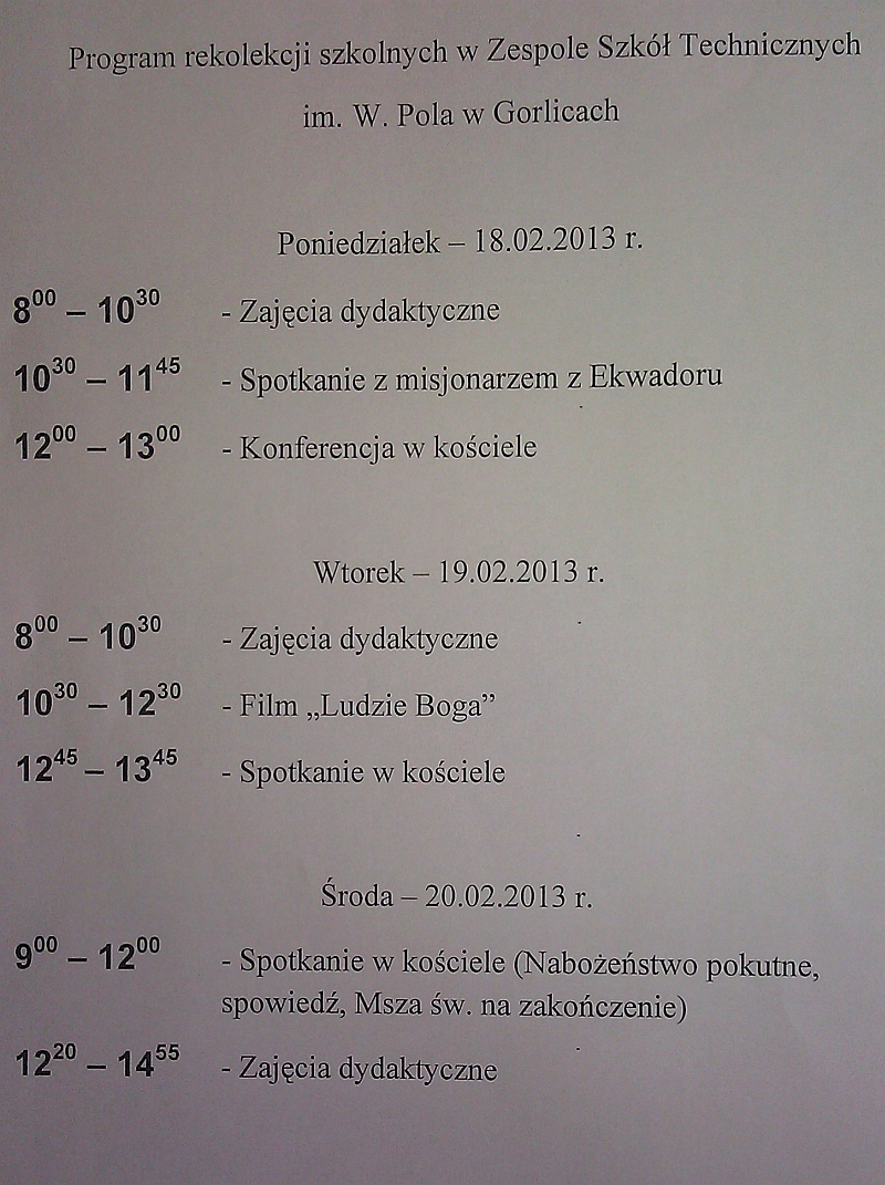 W tygodniu 18-22.02.2013____Od 18 do 20 lutego uczniowie klas I-III biorą udział w rekolekcjach. Szczegółowy plan rekolekcji w linku poniżej. |