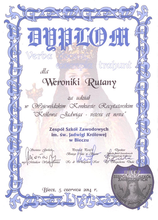 "Literacki Szlak Powiatu Gorlickiego"Wyróżnienie dla Pauliny Dutki, uczennicy z klasy IcT , w XV Powiatowym Konkursie Czytelniczym "Literacki Szlak Powiatu Gorlickiego". 15 maja 2014r. w sali odczytowej "Po sową" Miejskiej Biblioteki Publicznej im. St. Gabryela w Gorlicach zostali uhonorowani wszyscy uczestniczy konkursu. Tegoroczna edycja nie należała do łatwych, przedmiotem konkursu było przygotowanie prezentacji w dowolnej postaci