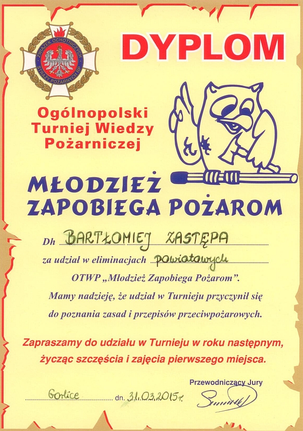 Powiatowe Eliminacje Ogólnopolskiego Turnieju Wiedzy Pożarniczej,