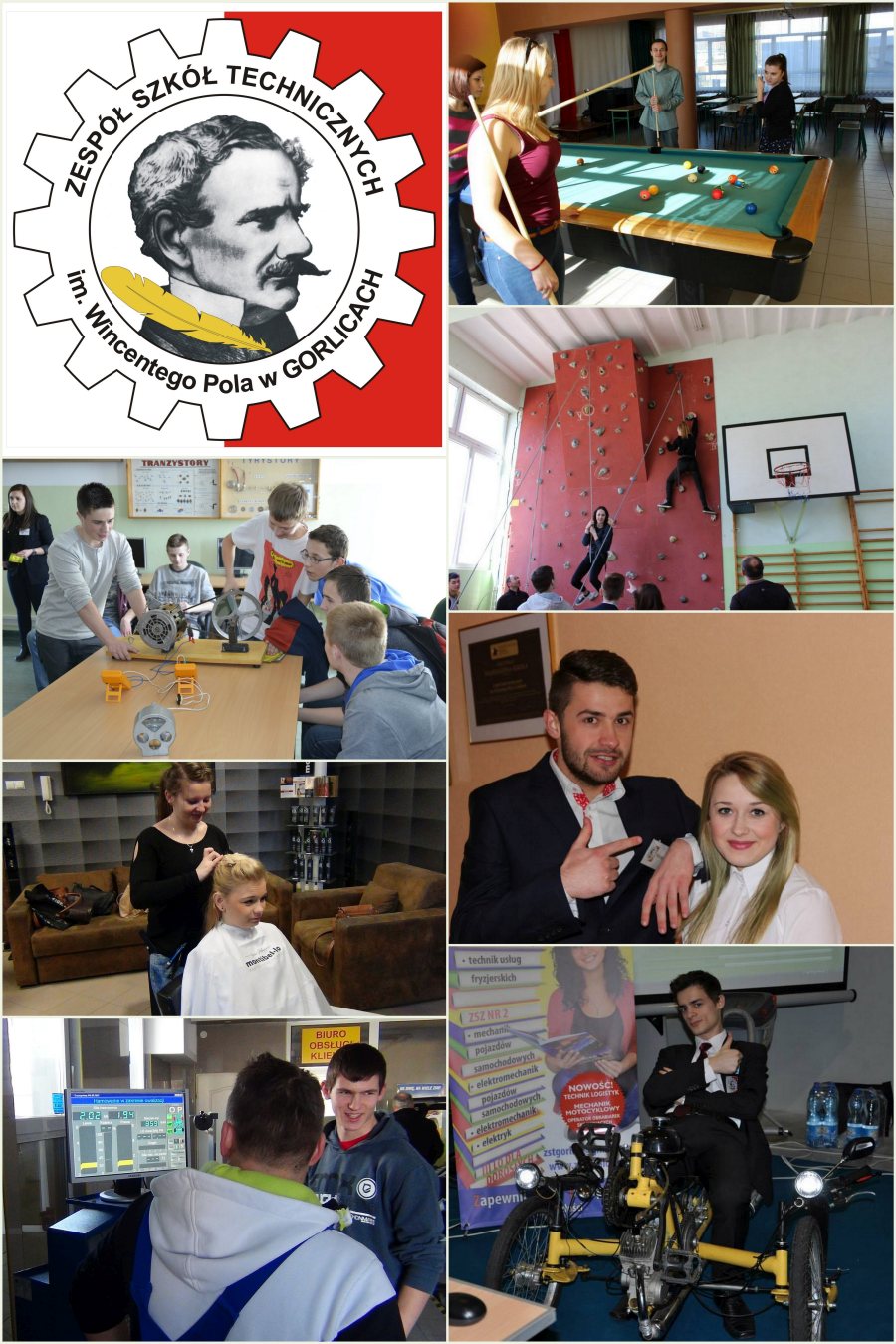 "Aktywne środy w naszej szkole"___"Aktywne środy" to projekt skierowany głównie do uczniów gimnazjów, który ruszył pod koniec stycznia 2014 r. w Zespole Szkół Technicznych w Gorlicach. Szkoła zaprasza właśnie w środy, w godzinach od 16.30 do 18.45, do korzystania z pomieszczeń i wyposażenia sportowego. Udostępnia salę gimnastyczną, ściankę wspinaczkową, stoły do ping ponga i bilarda. Zajęcia odbywają się pod opieką szkolnych instruktorów. Warunkiem skorzystania z oferty sportowej ZST w Gorlicach jest posiadanie karnetu, który można odebrać nieodpłatnie w sekretariacie szkoły. |
