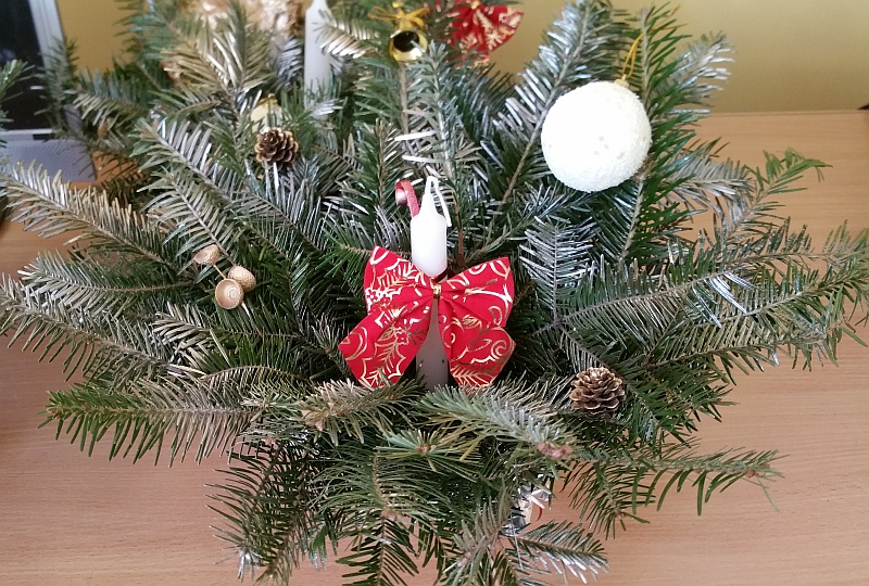 | Stroiki dla nauczycieliTakie urocze stroiki przygotowały dziewczęta z Samorządu uczniowskiego w prezencie świątecznym dla nauczycieli. |