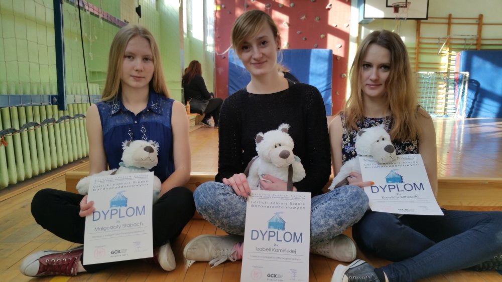 Szopki bożonarodzeniowe___Trójka dziewcząt z klasy IIbT (Izabela Kamińska, Ewelina Mroczka i Małgorzata Stabach) zajęła pierwsze miejsce w kategorii szkół ponadgimnazjalnych Gorlickiego Konkursu Szopek Bożonarodzeniowych. 17 grudnia w sali teatralnej Gorlickiego Centrum Kultury odbyło się uroczyste wręczenie nagród laureatom. Galę nagrodzonych oraz poprzedzający ją występ grupy teatralnej „Radość tworzenia” ze spektaklem "Bo rodzina jest najważniejsza", obserwowała grupa naszej młodzieży z klasy Ia T, IbT i IIbT. |