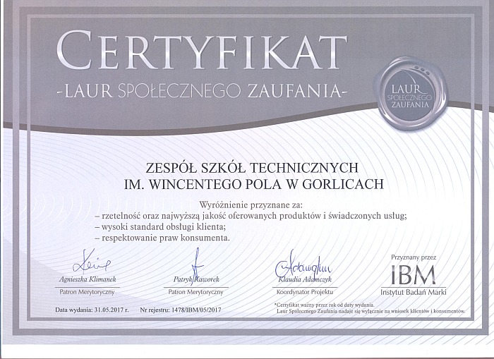 Ogólnopolski Konkurs "Technik Absolwent Roku 2017"27 marca odbyło się uroczyste spotkanie z przedstawicielami Oddziału SIMP w Gorlicach w celu wręczenia najlepszym absolwentom naszej szkoły wyróżnień, którzy brali udział w Ogólnopolskim Konkursie "Technik Absolwent Roku 2017".