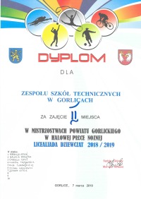 V-ce Mistrzynie PowiatuPo sześciu latach przerwy drużyna dziewcząt z naszej szkoły przebojem wdarła się na podium Mistrzostw Powiatu w Halowej Piłce Nożnej i to od razu na drugi jego stopień. Drużyna wystąpiła w składzie: Waleria Parzątka (kapitan), Gabriela Mosoń, Gabriela Totoś, Klaudia Trojanowicz, Ewa Tumidajewicz, Liliana Sienkiewicz, Joanna Witek. GRATULACJE DLA V-CE MISTRZYŃ |