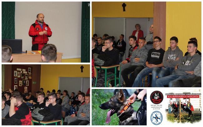 Grupa naszych uczniów w ostatnim czasie uczestniczyła w spotkaniu powadzonym przez ratownika Stowarzyszenia “Sekcja Psów Tropiących i Ratowniczych przy Centrum Szkolenia Psów Obronnych Nowy Sącz – Nowy Targ Podhale”, w ramach którego mogła zapoznać się z warunkami jakie trzeba spełnić by zostać ratownikiem stowarzyszenia i przewodnikiem psa ratowniczego. Stowarzyszenie realizuje bowiem zadania w zakresie poszukiwań osób w terenach górskich, leśnych, miejskich i odszukiwaniu osób poszkodowanych w katastrofach budowlanych. Dla nowo wstępujących członków Stowarzyszenie ma ciekawą ofertę bo będzie organizowało kursy na przewodników psów tropiących i ratowniczych, ponadto każdy z kandydatów będzie brał udział w szkoleniach specjalistycznych z zakresu: kwalifikowanej pierwszej pomocy, kurs wspinaczkowy, kurs krótkofalarski oraz szkolenia z zakresu terenoznawstwa i taktyki poszukiwań osób zaginionych, które będą prowadzone przez instruktorów i ratowników GOPRu oraz instruktorów posiadających uprawnienia z zakresu szkoleń taktycznych. |