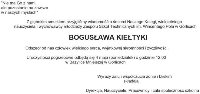 W dniu 29 maja nastąpiło rozstrzygnięcie XII Międzyszkolnego Turnieju "Angielski Wyścig" w kategorii Gra Internetowa KiK (ze względu na okoliczności tylko ta kategoria była realizowana w tym roku) organizowanego, jak co roku, przez Zespół Szkół Technicznych im. W. Pola w Gorlicach.
