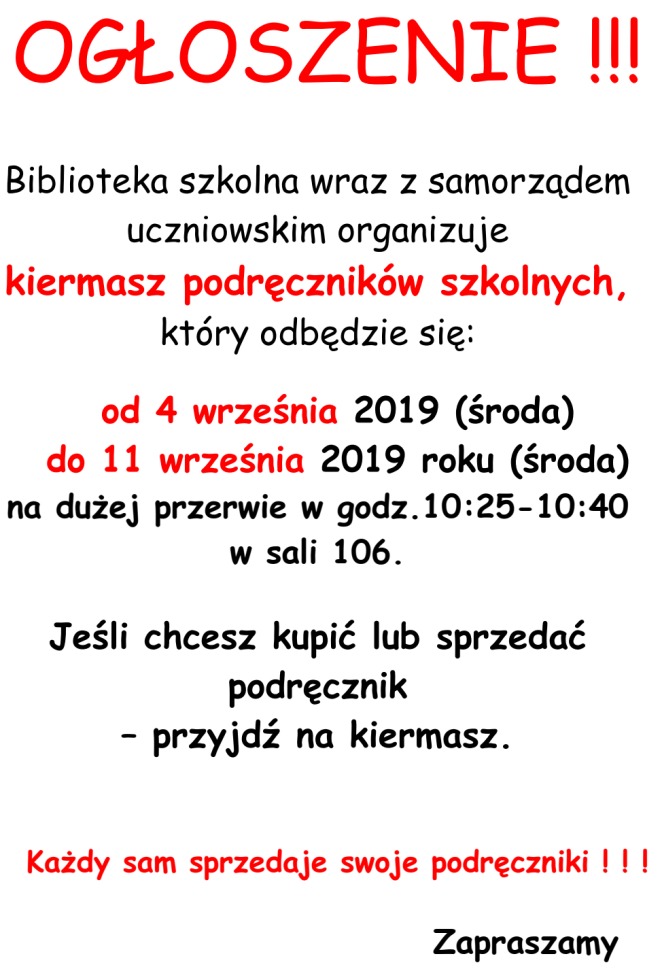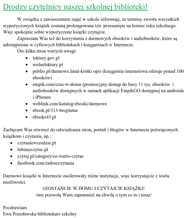 Katalog zbiorów naszej szkolnej biblioteki już w Internecie!Link do katalogu bibliotecznego |