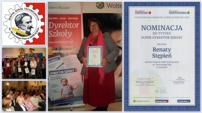 Dba o rozwój uczniów, współpracuje z pracodawcami, wspiera i jest inicjatorem różnorodnych przedsięwzięć oraz profesjonalny menedżer oświaty. Mowa o Pani Dyrektor Renacie Stępień, która znalazła się w dziesiątce najlepszych dyrektorów szkół w Polsce. Gratulujemy i życzymy dalszych sukcesów!